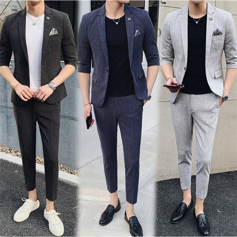 夏スーツセットアップ上下 五分丈 スリムスーツ カジュアル テーラードジャケット 九分丈 スラックス 無地 2ピーススーツ メンズ カジュアルスーツ 夏 男性用スーツ 紳士品 Fk 10 通販 Lineポイント最大1 0 Get Lineショッピング